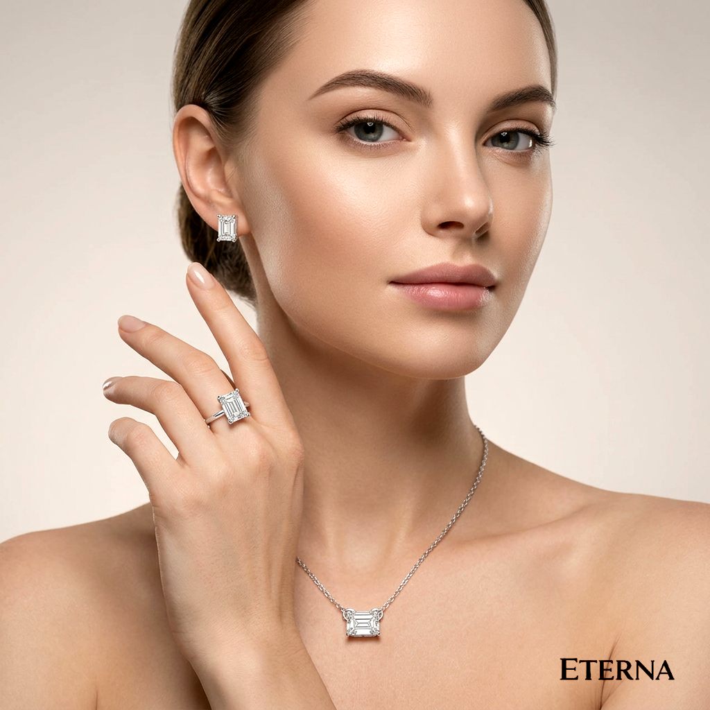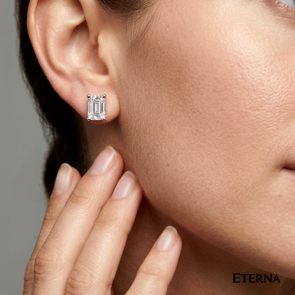 Elevate your look with the ETERNA Taurus Emerald Stud Earrings, crafted with brilliant Emerald Cut solitaires. Representing elegance and reliability, […]