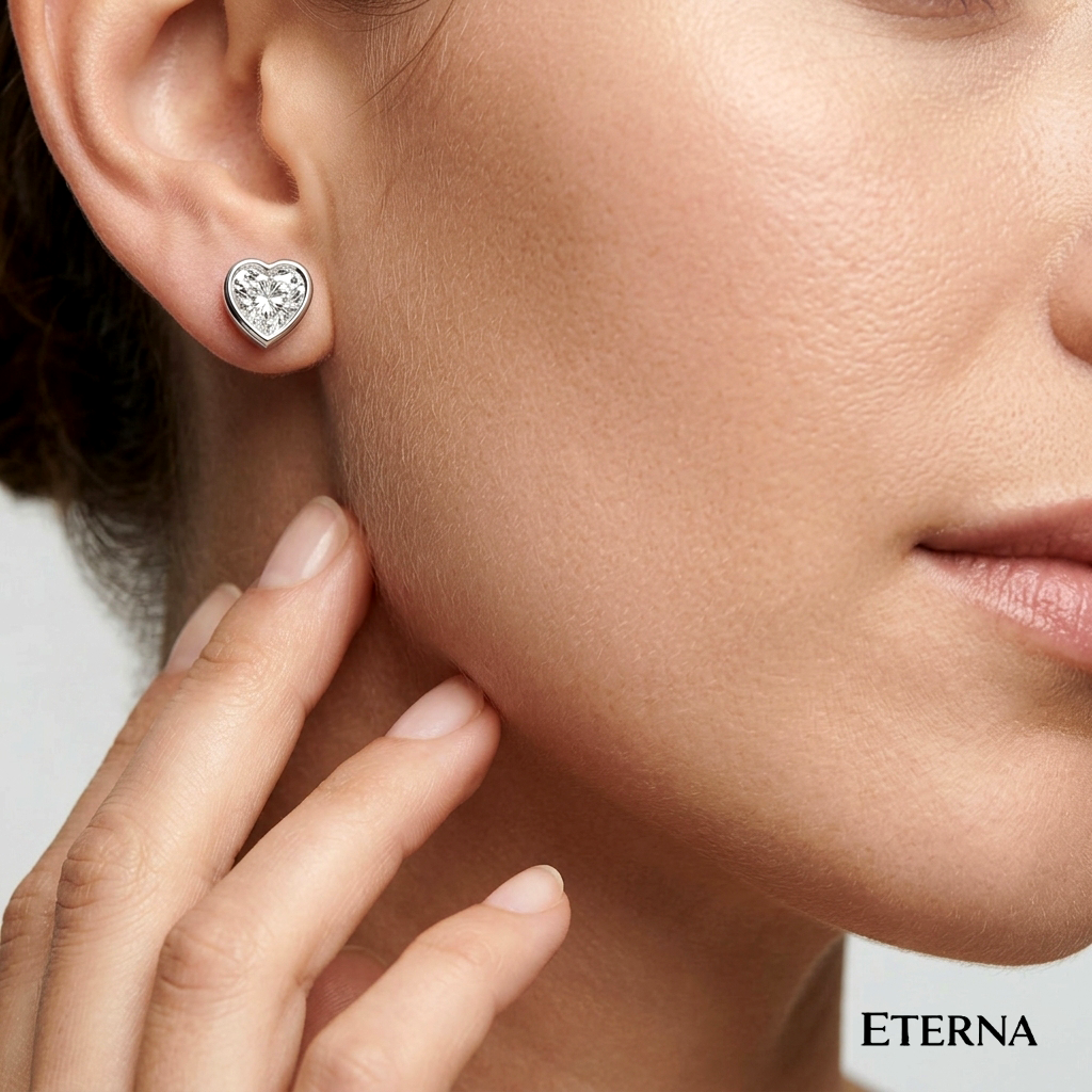 The Elaris Amora Diamond Stud Earrings embody pure romance, featuring heart-shaped brilliant diamonds gracefully embraced in a sleek collet setting. Their clean and luminous design highlights the natural fire of each stone, creating a timeless expression of love and understated luxury.