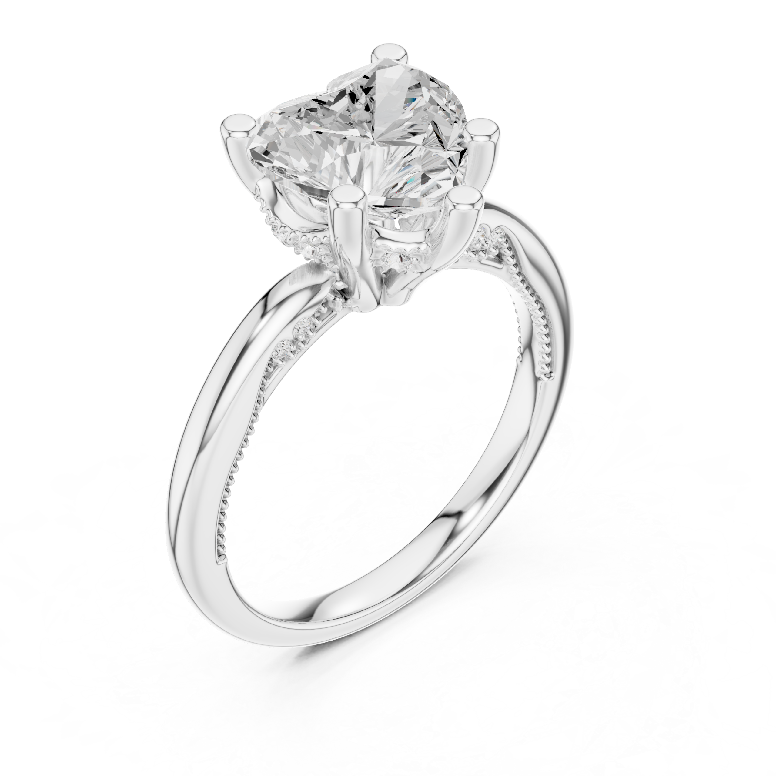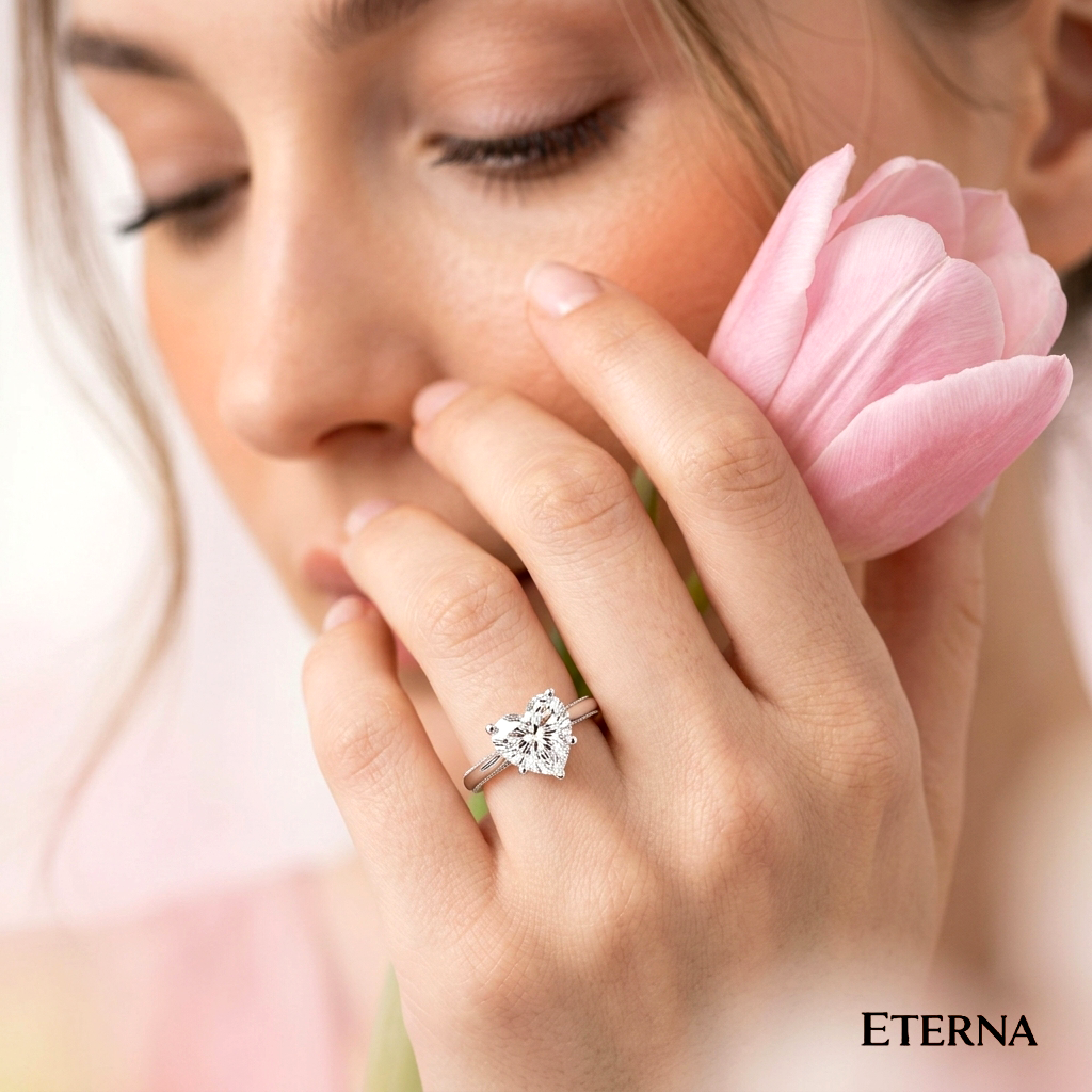 A timeless symbol of love and brilliance, the Elyndra Heart Ring features a captivating heart-shaped center stone secured in a refined prong setting. With its graceful silhouette and elevated design, this ring reflects pure emotion, elegance, and enduring luxury.