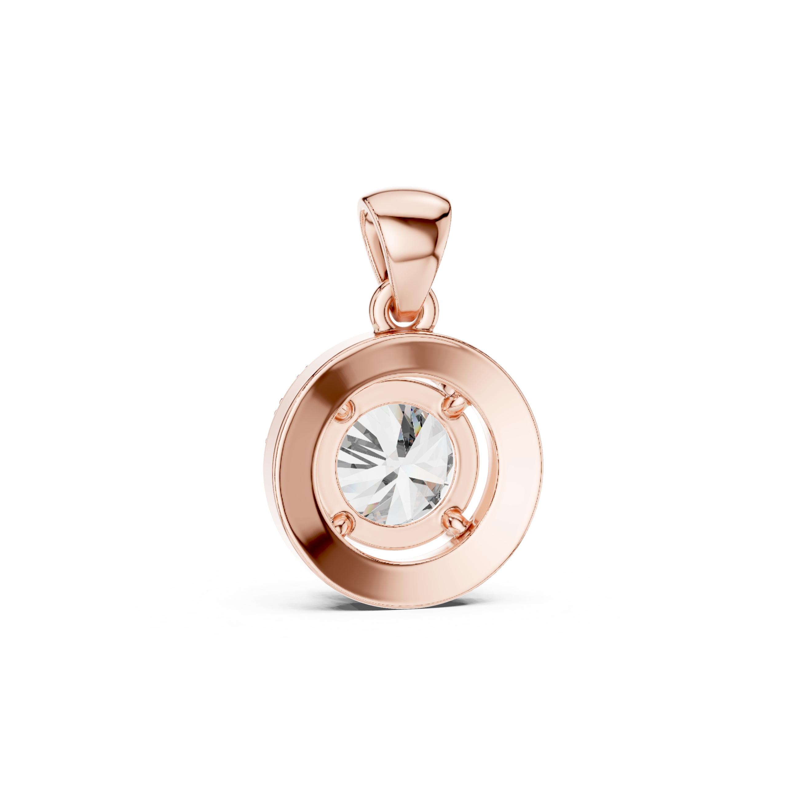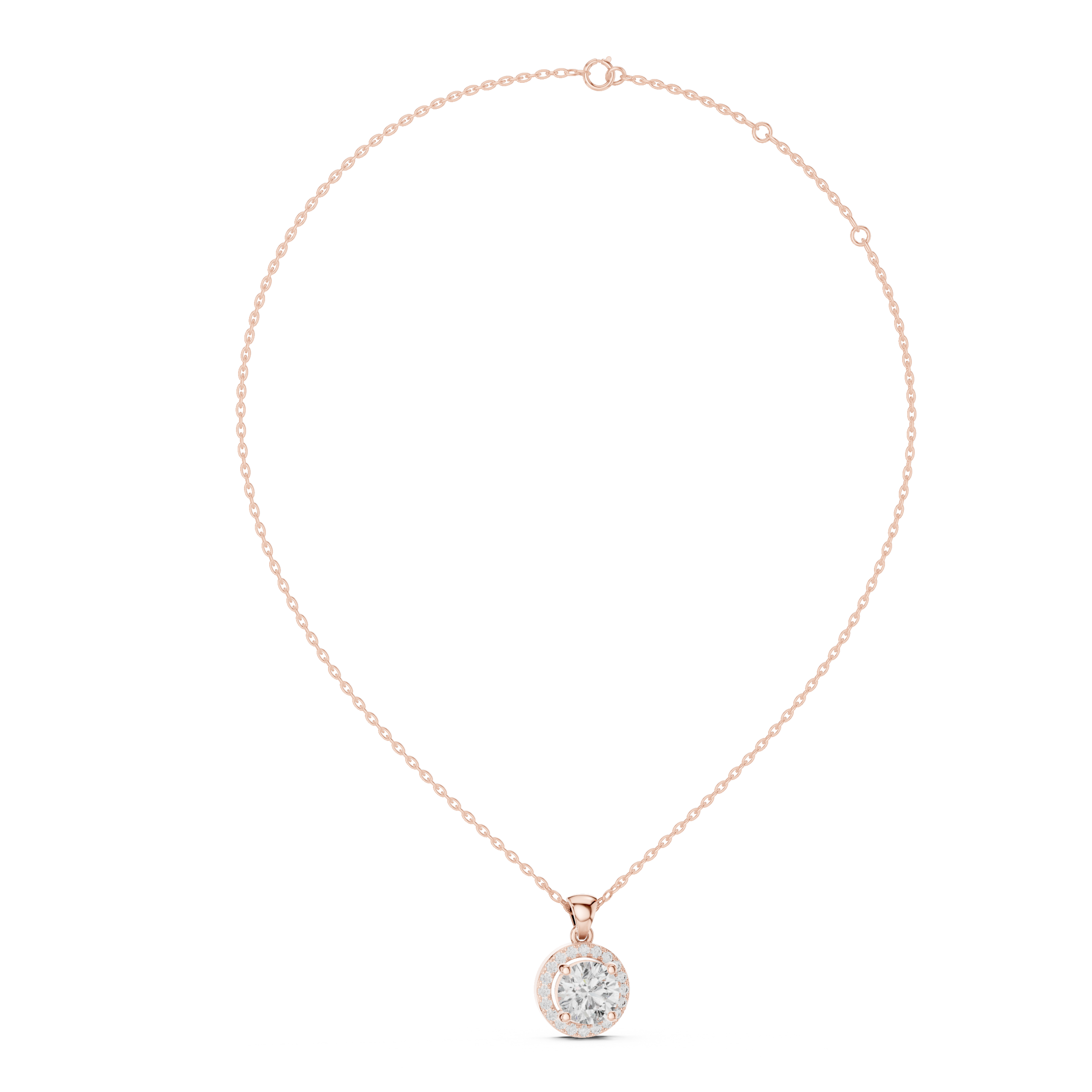 A celebration of eternal brilliance, this pendant showcases a radiant round diamond embraced by a delicate pavé halo. The elevated setting allows light to pass through effortlessly, amplifying the stone’s fire while creating a floating illusion of brilliance. Refined, timeless, and endlessly luminous crafted to symbolize infinity in its purest form.
