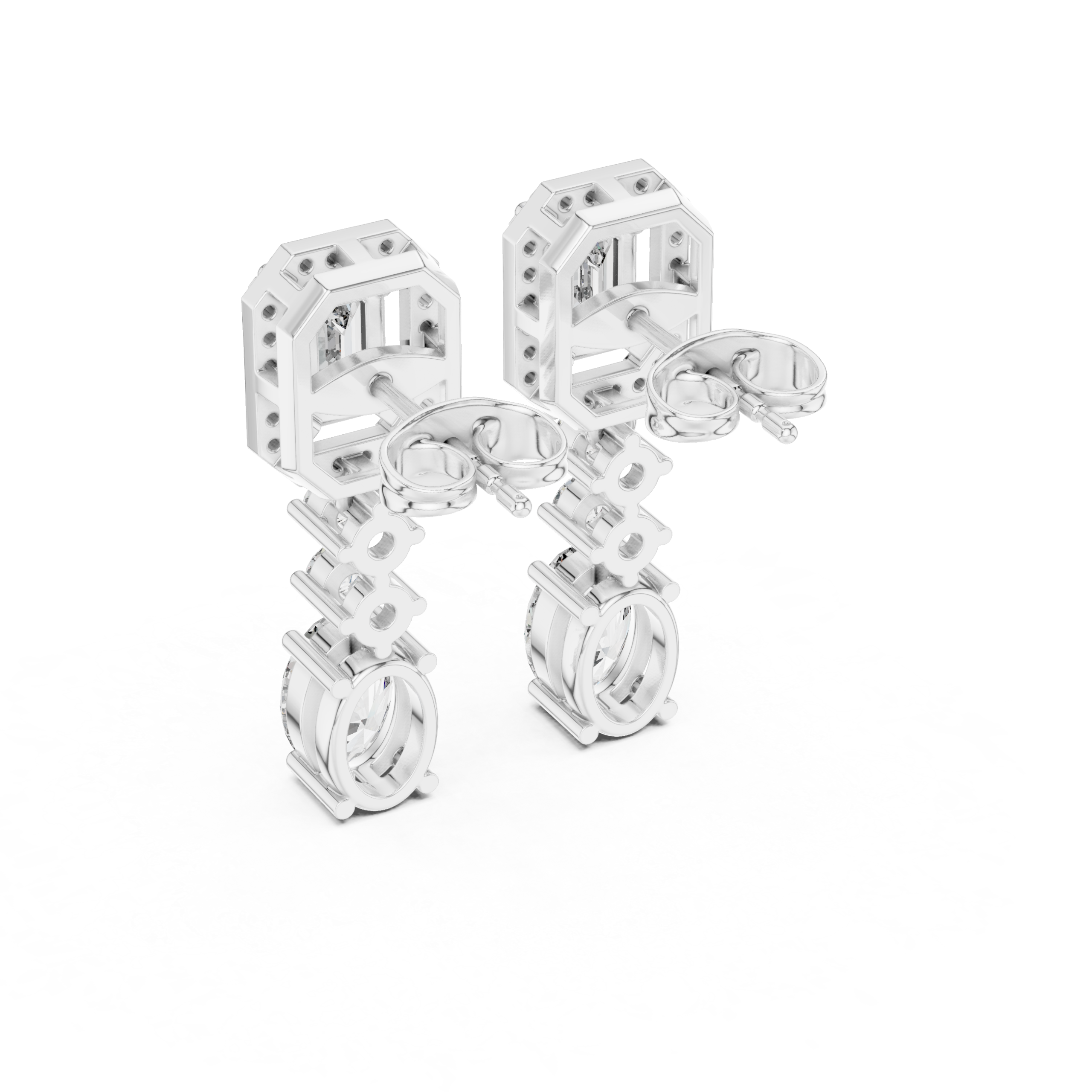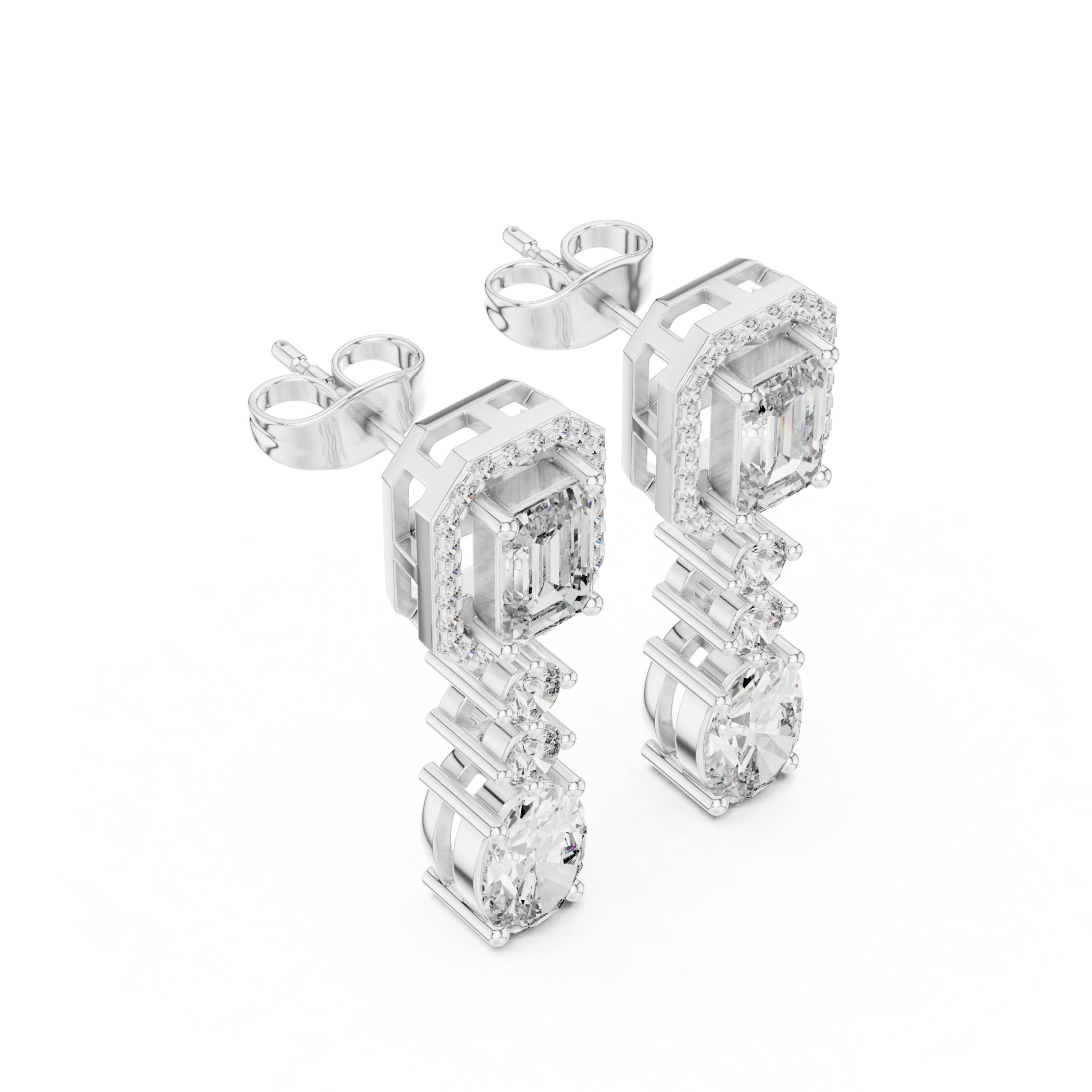The Lumière Halo Earrings radiate timeless elegance with a striking emerald-cut diamond framed by a shimmering halo of brilliant diamonds. Gracefully suspended with a delicate cascade of round and oval diamonds, the design captures light with every movement. Part of the Lumière Halo Collection, these earrings embody refined brilliance and modern luxury.
