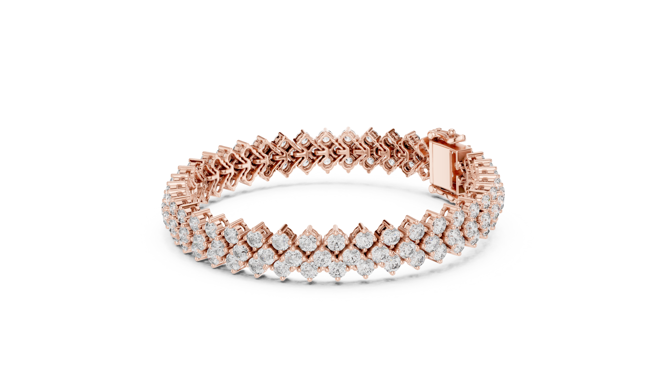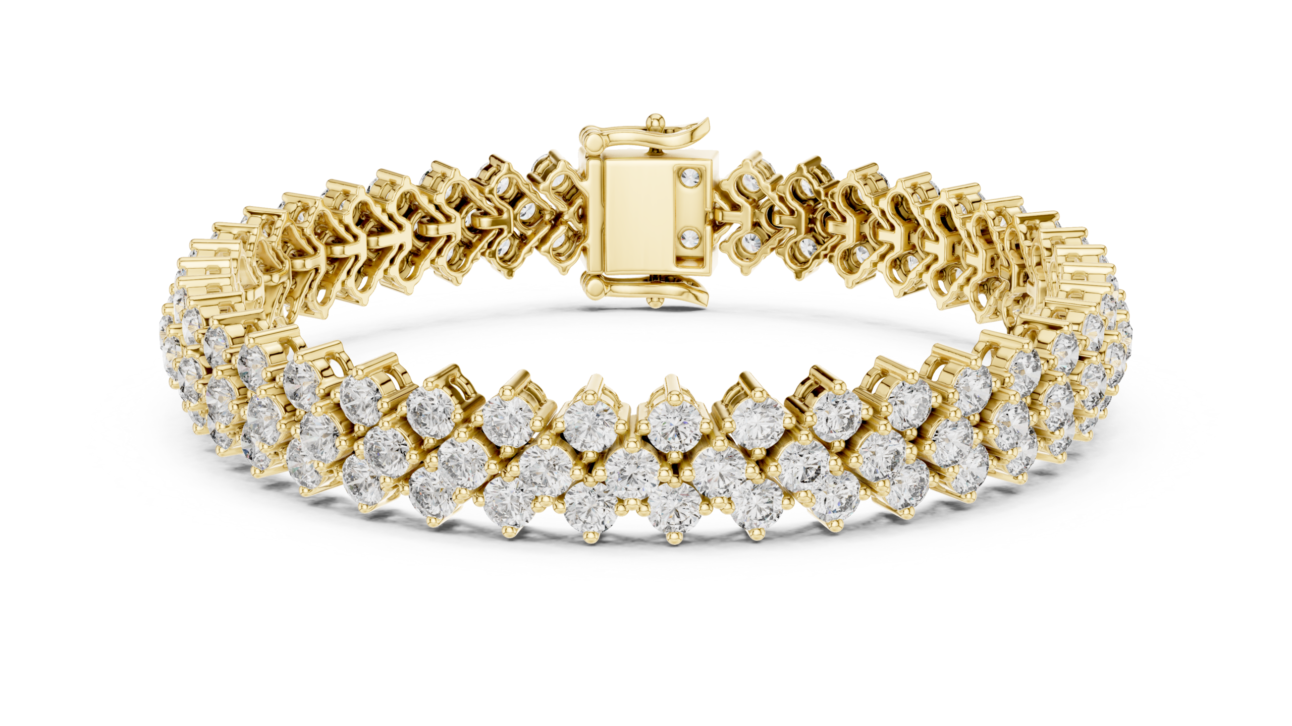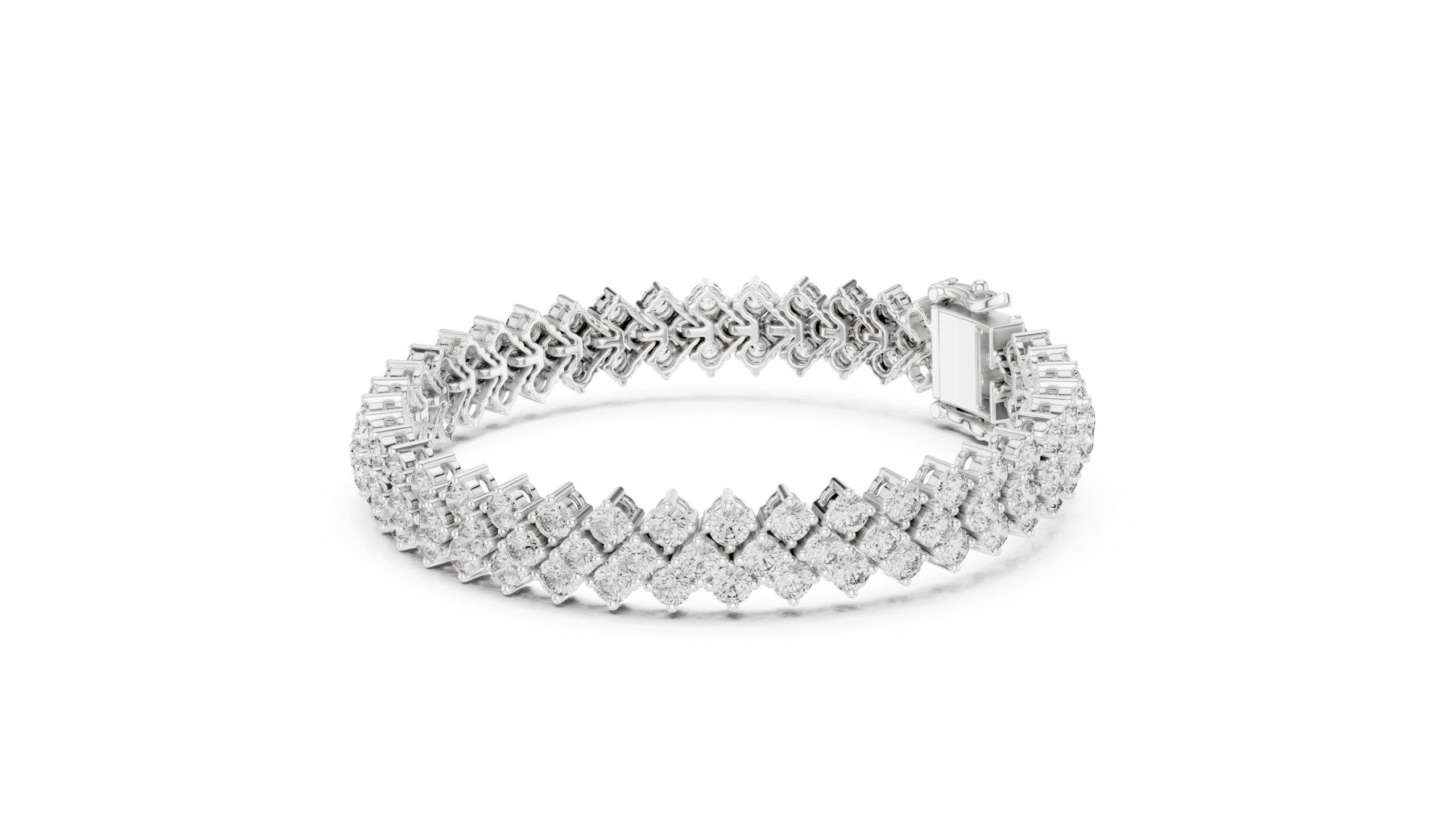 The Serelith Trielle Diamond Bracelet is a bold expression of brilliance, featuring three graceful rows of round brilliant-cut diamonds intricately set in a fluid collet link design. The layered silhouette creates a rich tapestry of light and sparkle, delivering a statement of refined luxury and elevated craftsmanship with every movement.