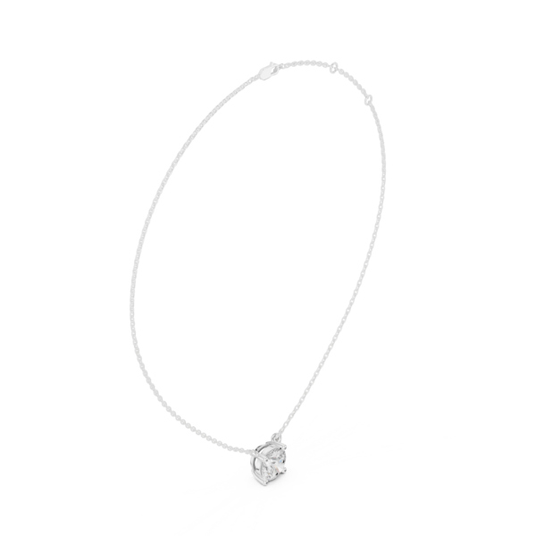 The Signature Solitaire Diamond Necklace showcases a brilliant round-cut diamond elegantly secured in a classic four-prong setting. Suspended from a delicate chain, the design highlights the diamond’s natural brilliance while maintaining a refined and minimalist aesthetic.