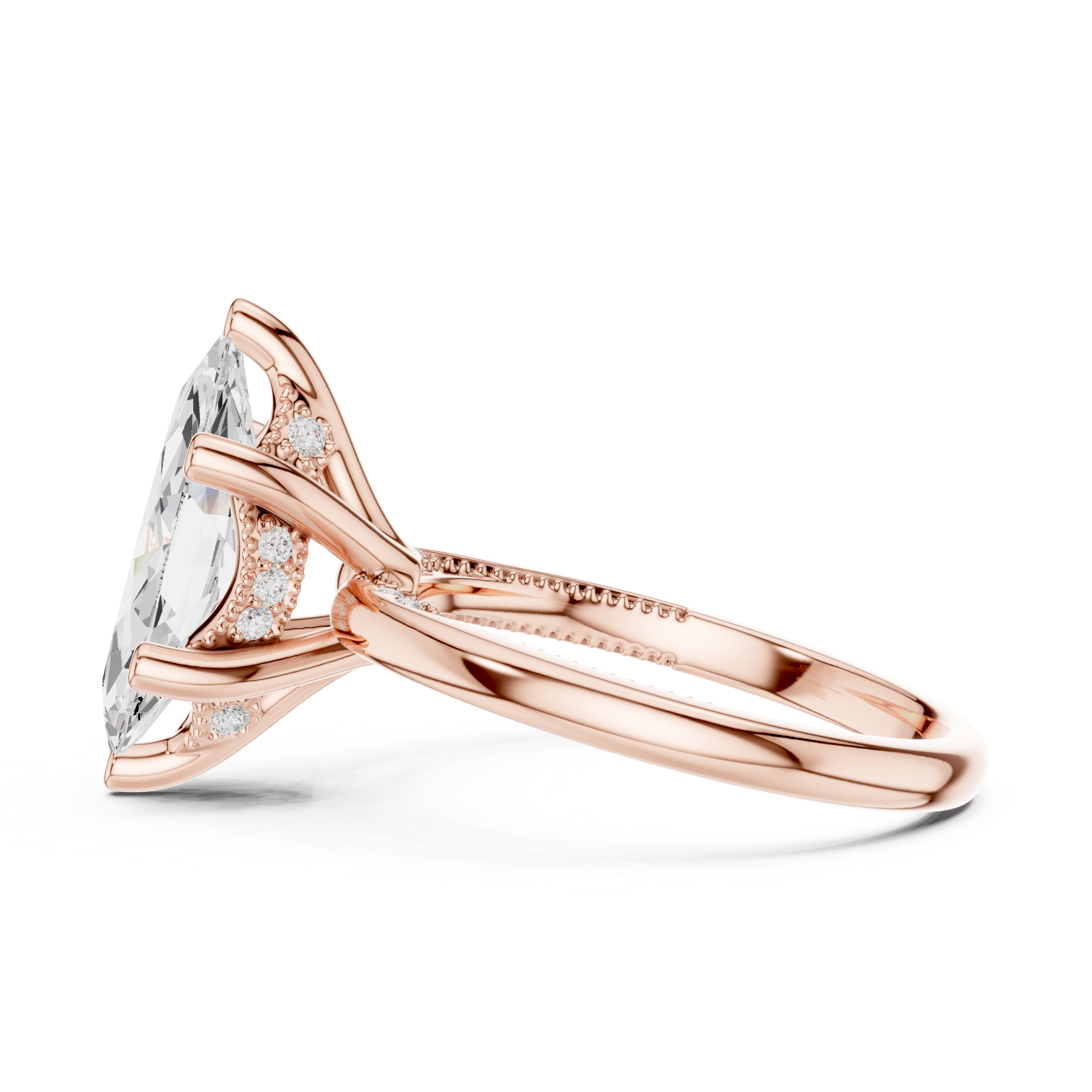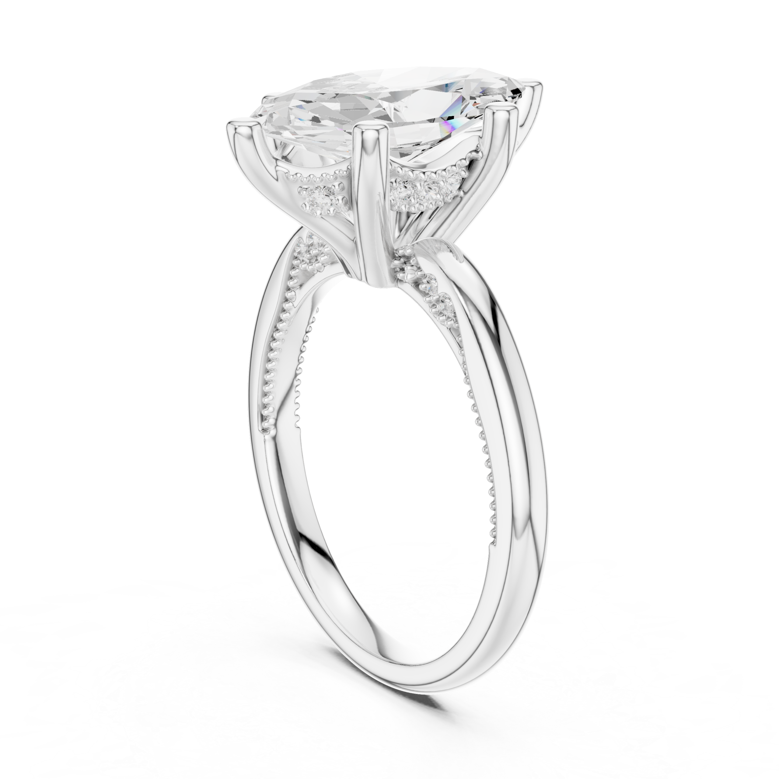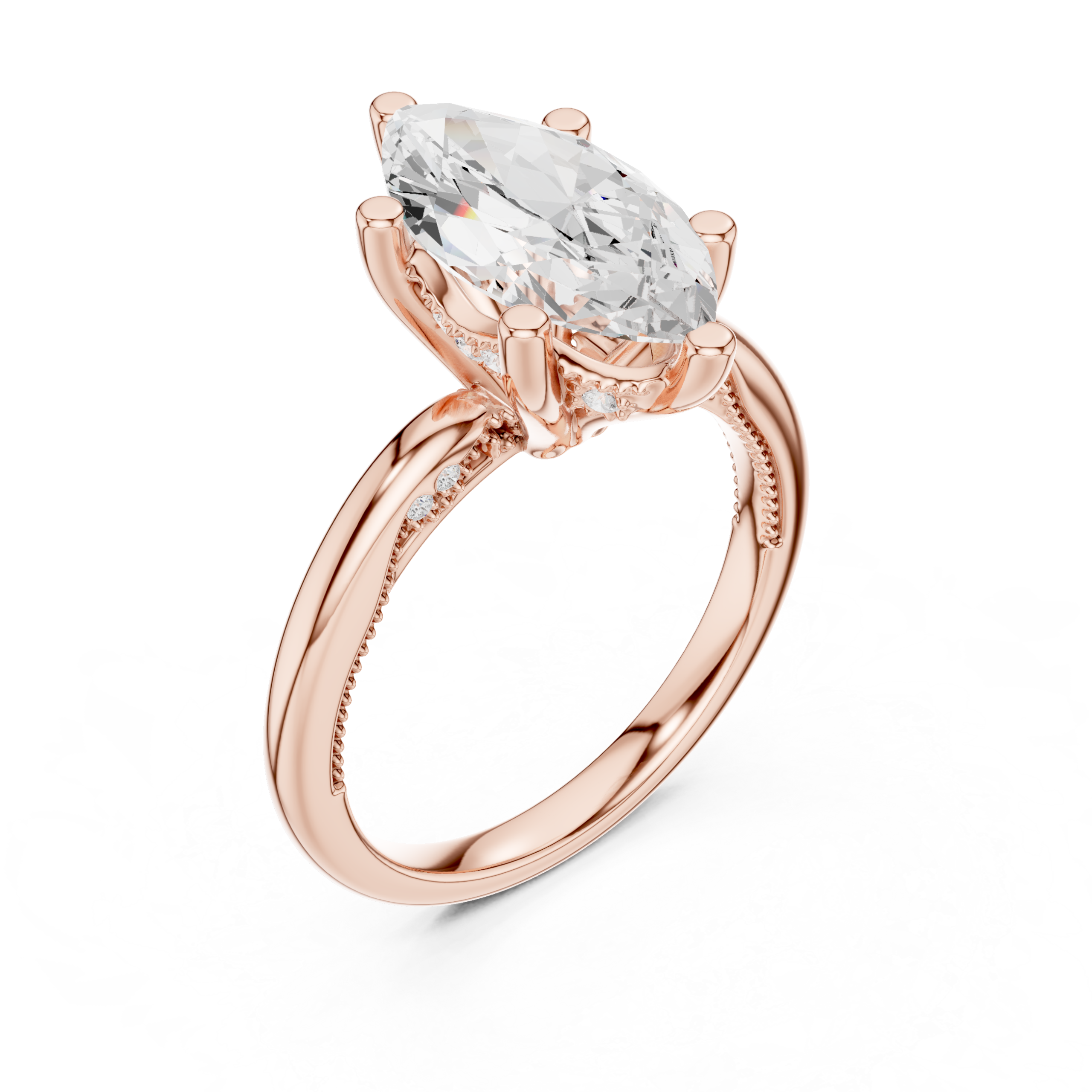 A striking expression of elegance, the Velmira Marquise Ring features a refined marquise-cut center stone secured in a classic prong setting. Designed to enhance brilliance and create a graceful elongated silhouette, this ring embodies modern sophistication and timeless luxury.