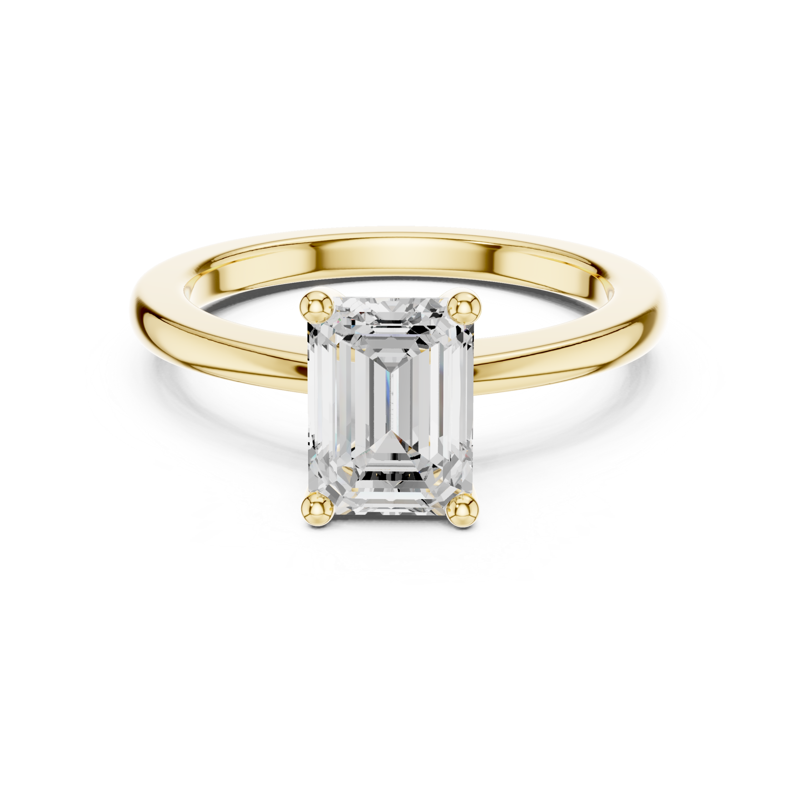 The Velmora Emerald Bezel Ring highlights the refined geometry of an emerald-cut diamond, gracefully secured in a sleek bezel setting. Its clean lines and mirror-like facets create a sophisticated, modern silhouette perfect for understated luxury with timeless elegance.