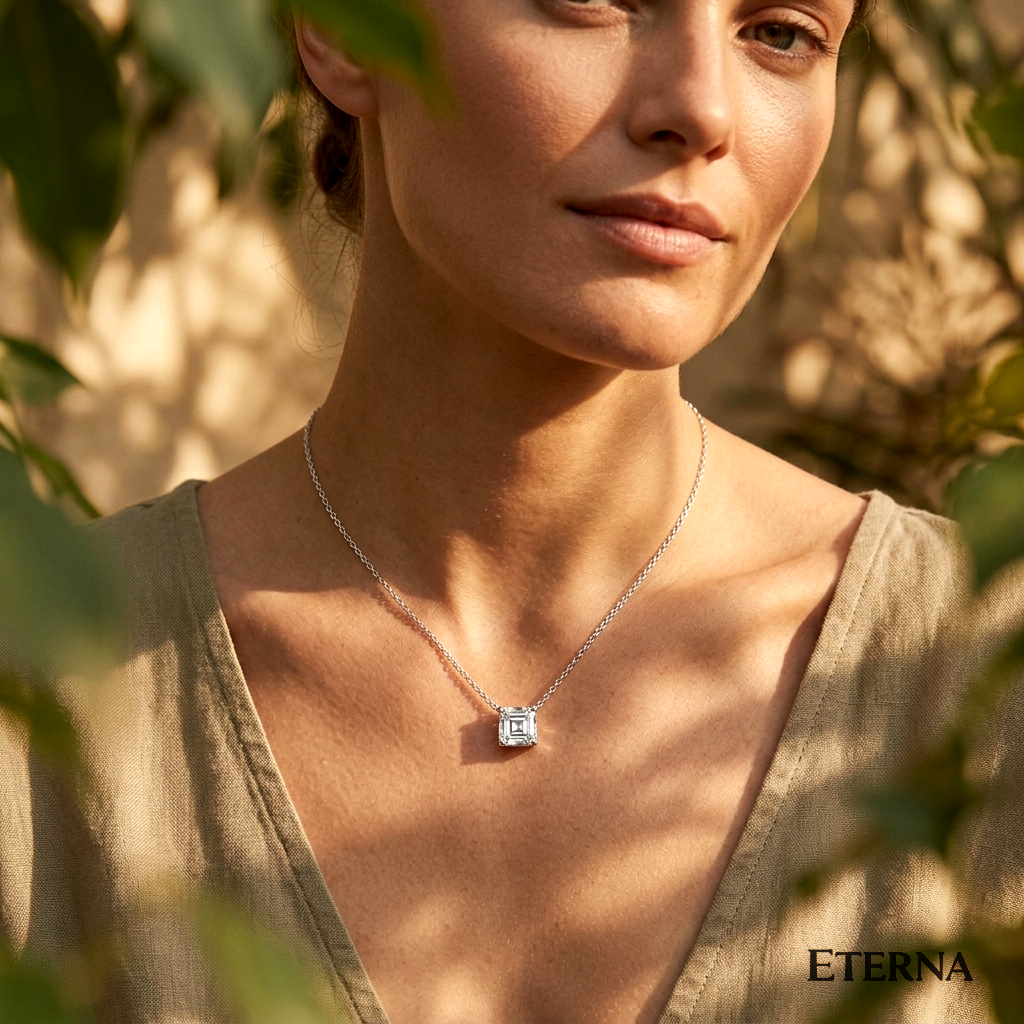 The Celestia Asscher Diamond Necklace showcases the timeless elegance of an Asscher-cut solitaire diamond, celebrated for its distinctive step-cut facets […]