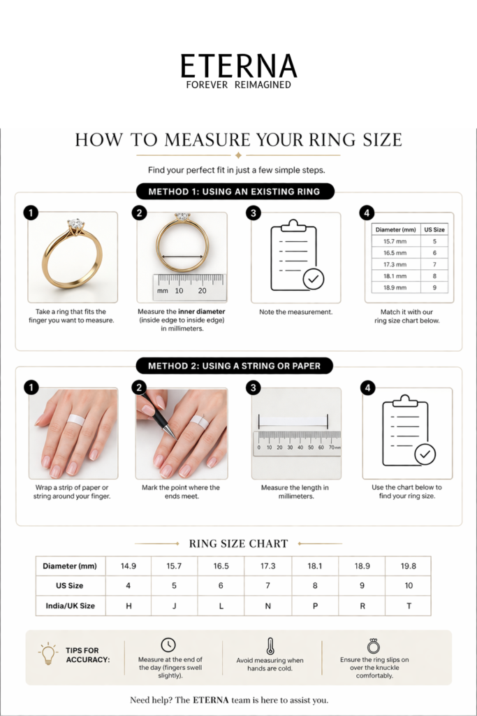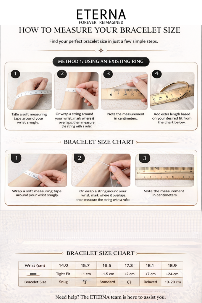 Need help? The ETERNA team is here to assist you in finding your perfect fit.